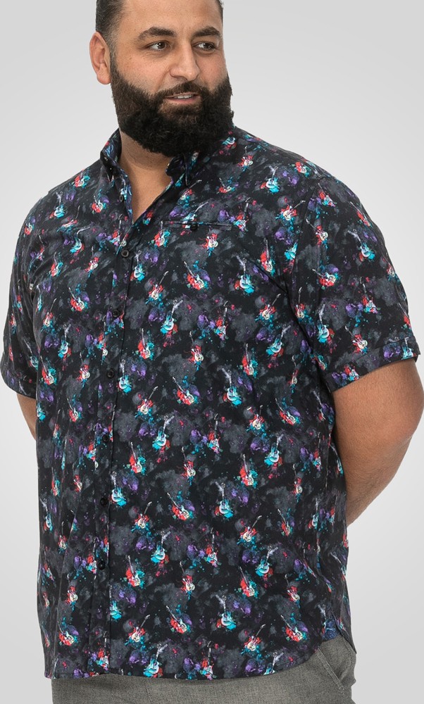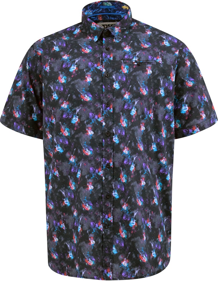 Maattabel - D555 Farnborough Short Sleeve Guitar AOP Shirt With Hidden Button Down Black