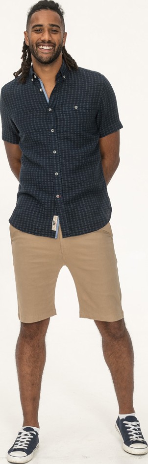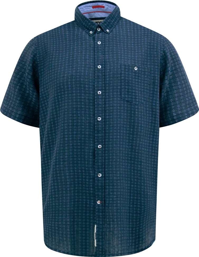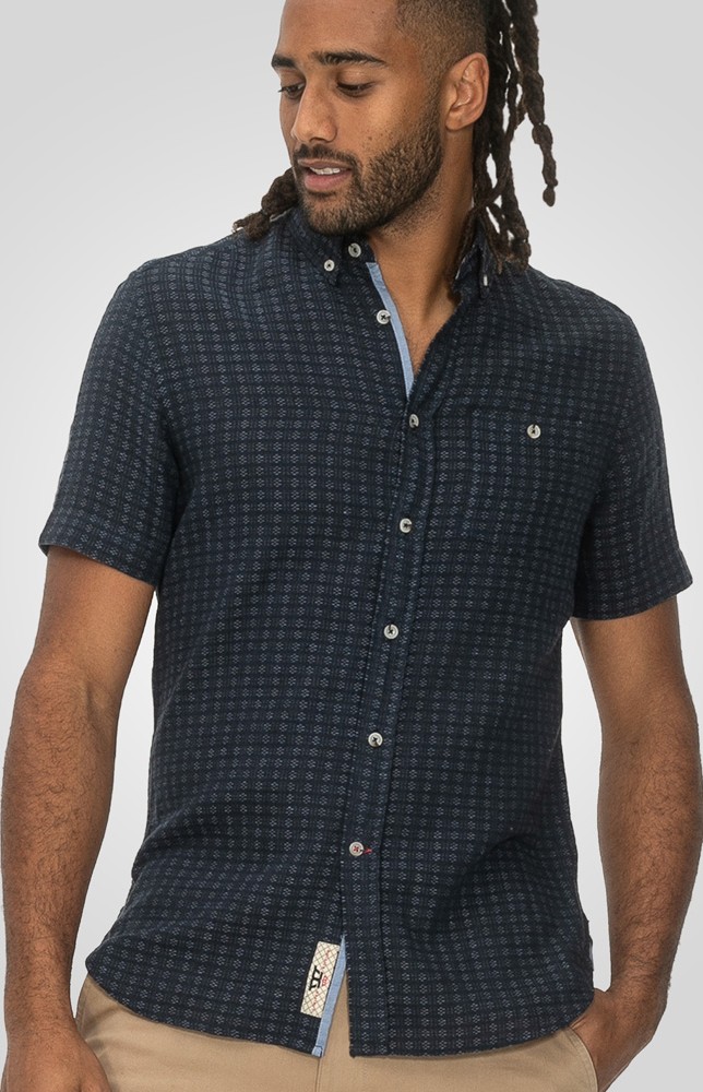 Maattabel - D555 Pontefract Jacquard Linen Mix Short Sleeve Shirt With Button Down Navy