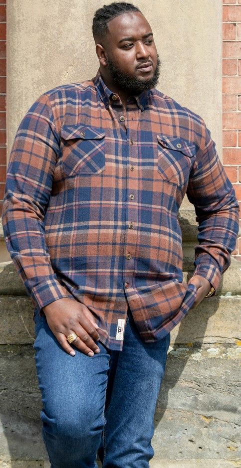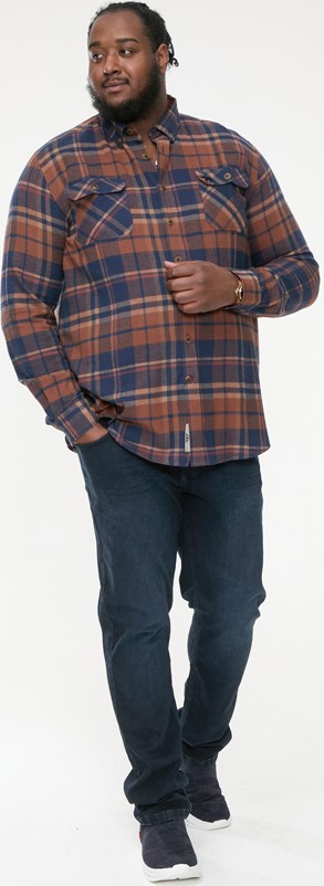 Maattabel - D555 SHERLOCK Check Overshirt With Two Patch Pockets & Button Down Collar Navy