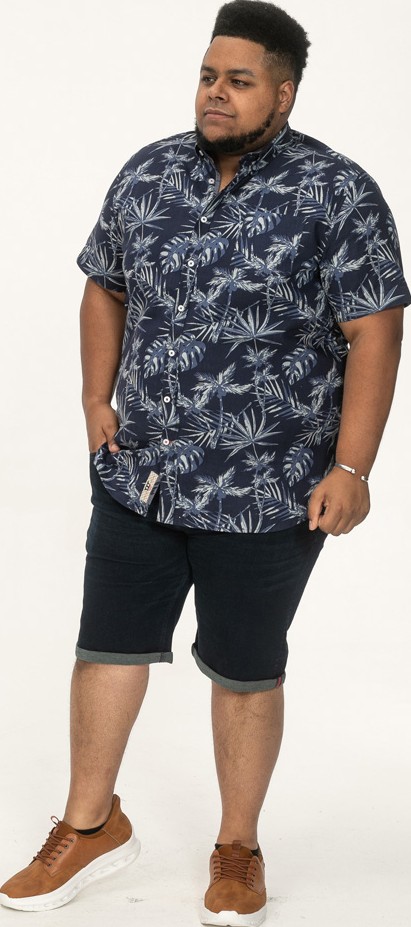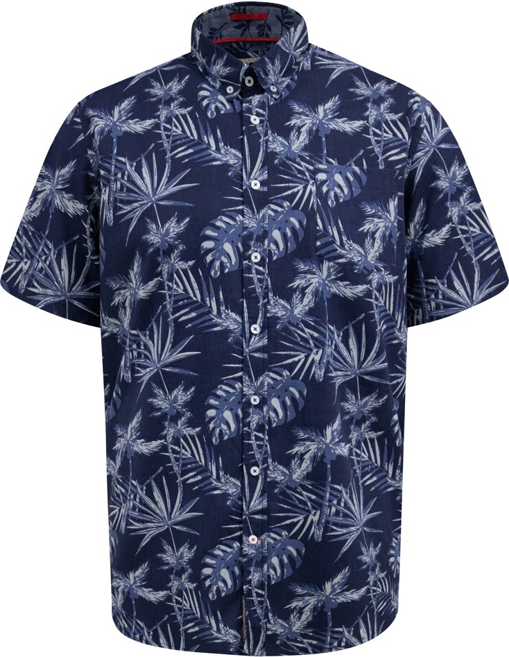 Maattabel - D555 Truro Hawaiian AOP Short Sleeve Button Down Collar Shirt Navy