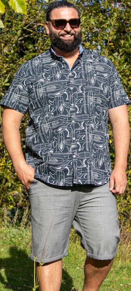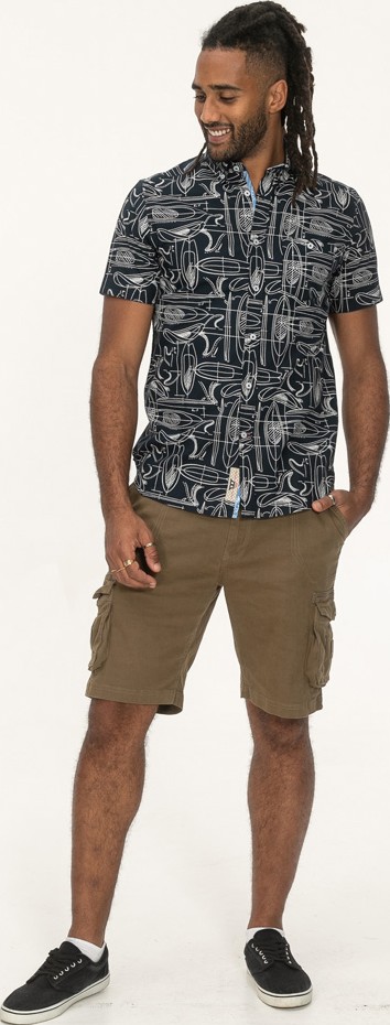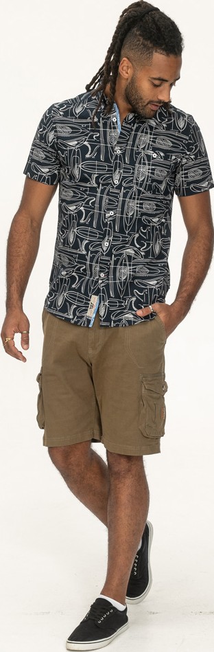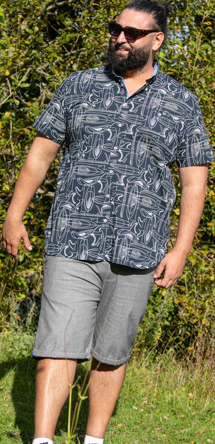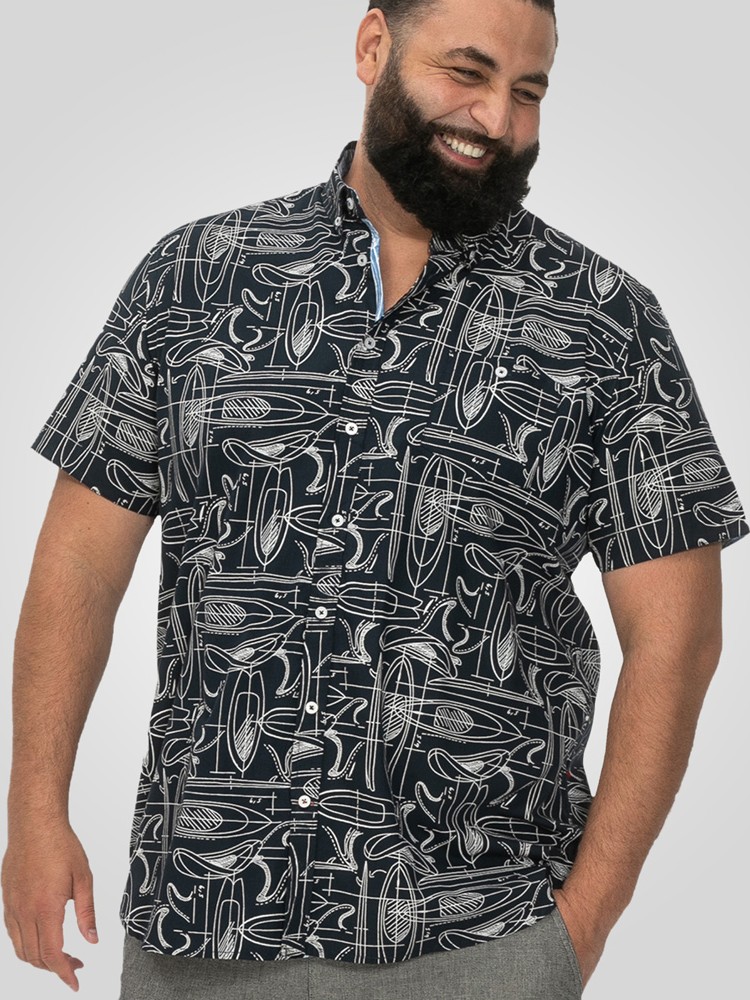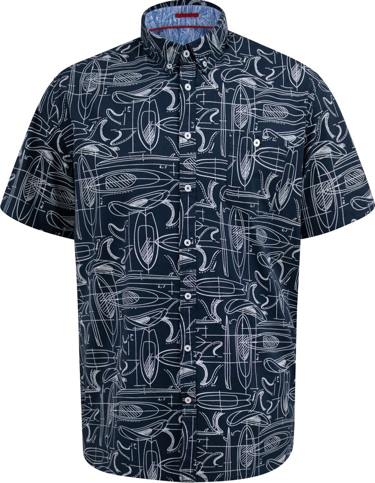 Maattabel - D555 Worthing Surf AOP Short Sleeve Button Down Collar Shirt Navy