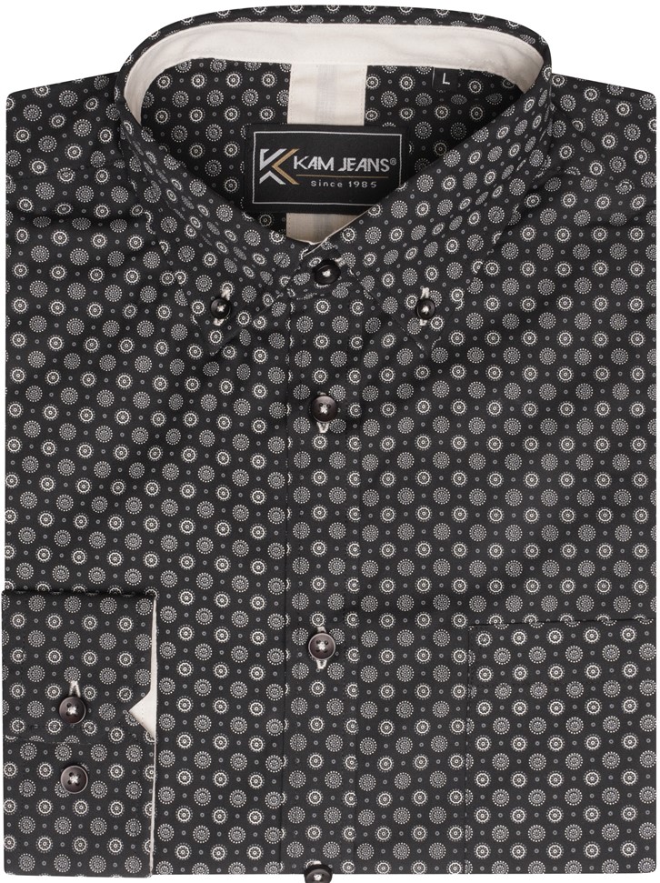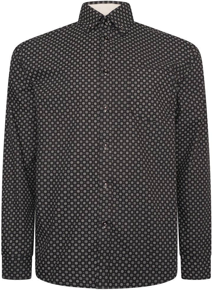 Maattabel - Kam Jeans 6296 Long Sleeve All Over Geo Print Shirt Black
