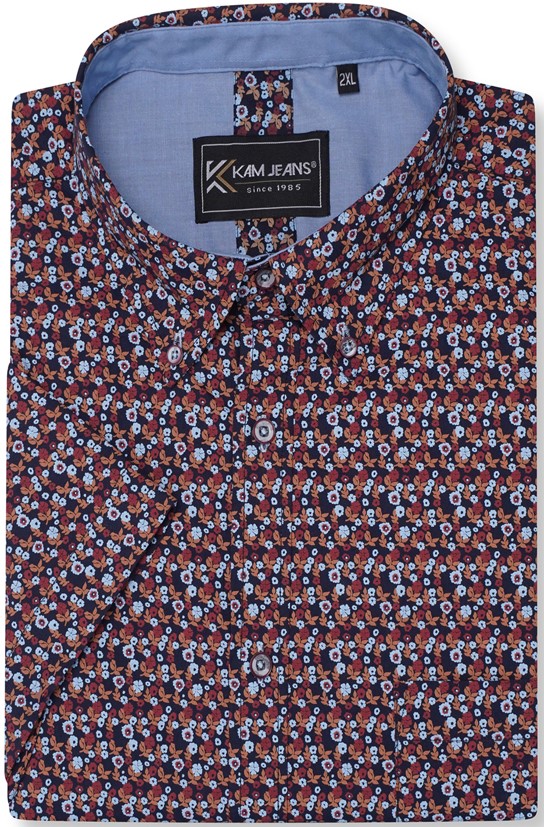 Maattabel - Kam Jeans 6326 Mini Floral Print Short Sleeve Shirt Navy