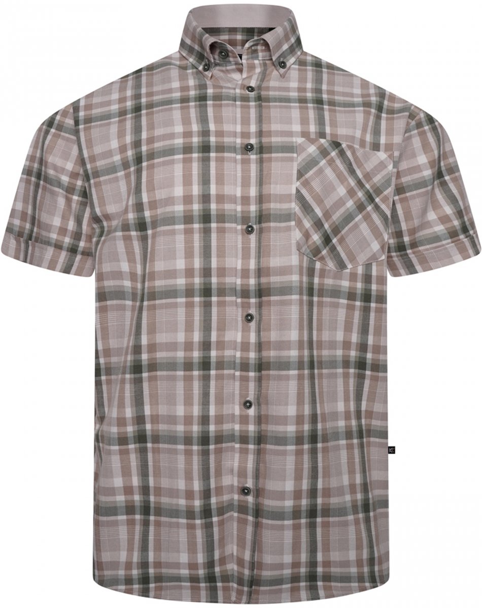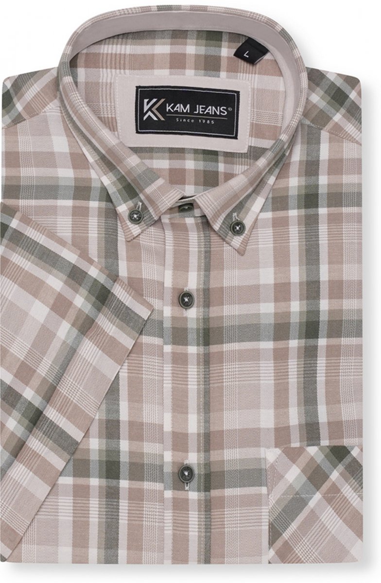 Maattabel - Kam Jeans 6339 Checked Short Sleeve Shirt Beige