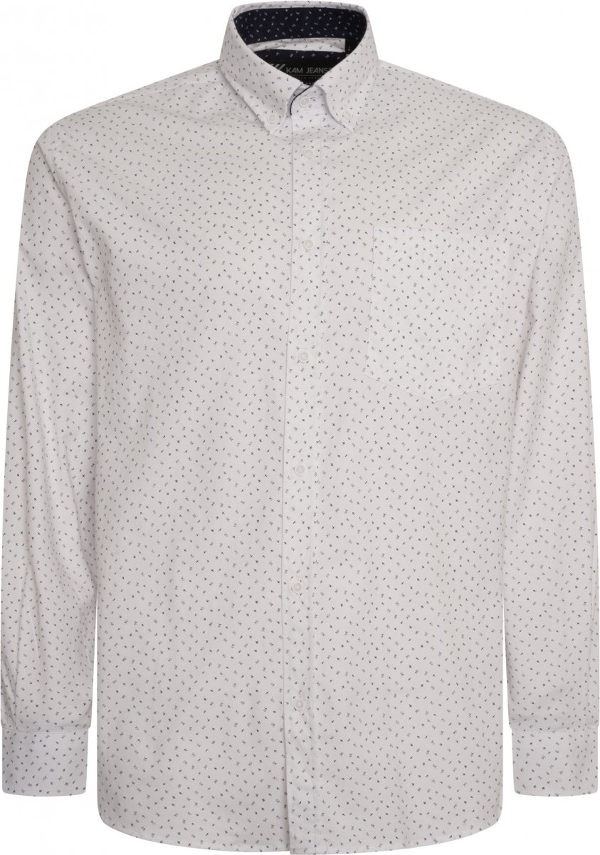 Maattabel - Kam Jeans P037 Dobby Print Stretch Long Sleeve Shirt White