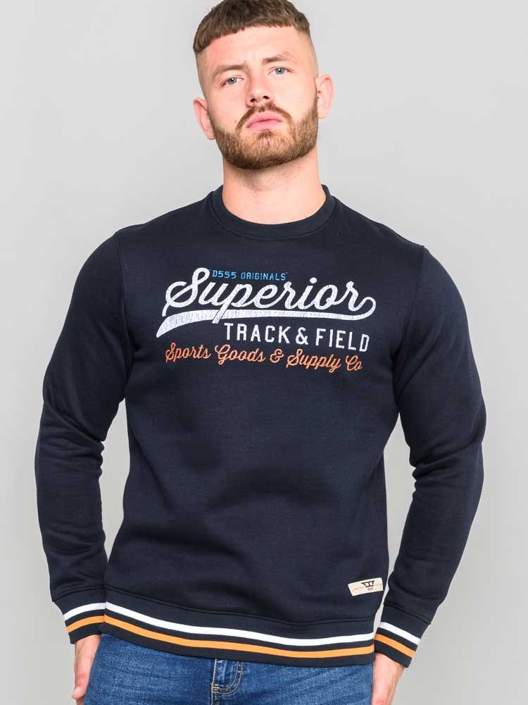 Maattabel - D555 Marlow Printed Crew Neck Sweatshirt Navy