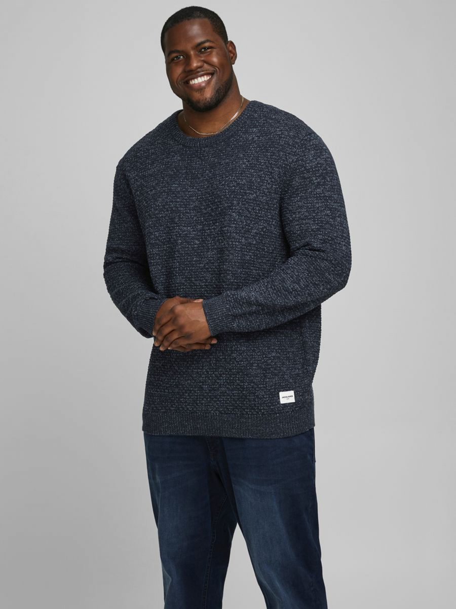 Grote maten SweaterWe verkopen het in de maten 3XL-8XLVan het overbekende Deense merk JACK & JONESGemaakt van 50% katoen, 50% acrylKleur is navyWas dit kledingstuk op 30°CSeizoensproduct - deze maten komen niet opnieuw op voorraad