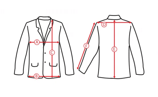F - arm length is measured from top of shoulder along outer arm down to cuff edge