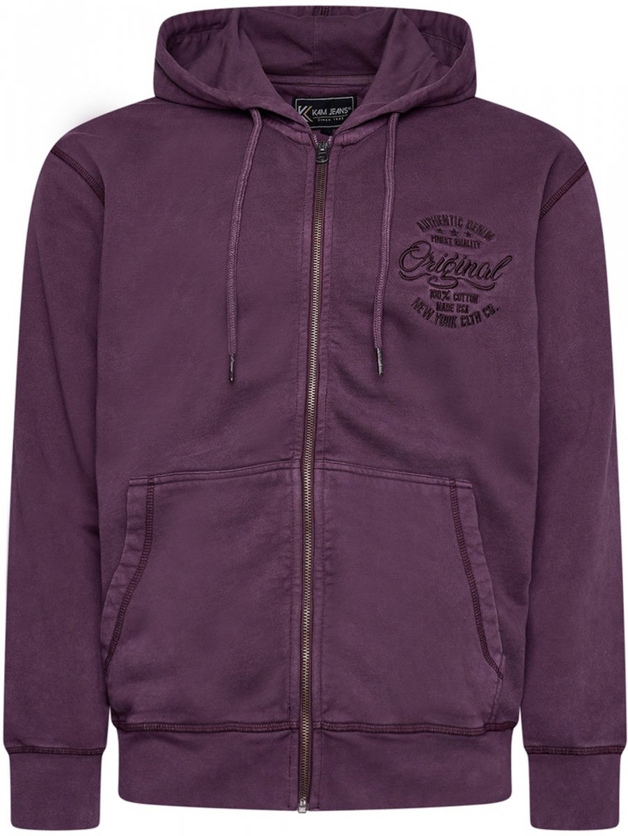 Maattabel - Kam Jeans 7082 Garment DYE with Zipper Hoodie Purple