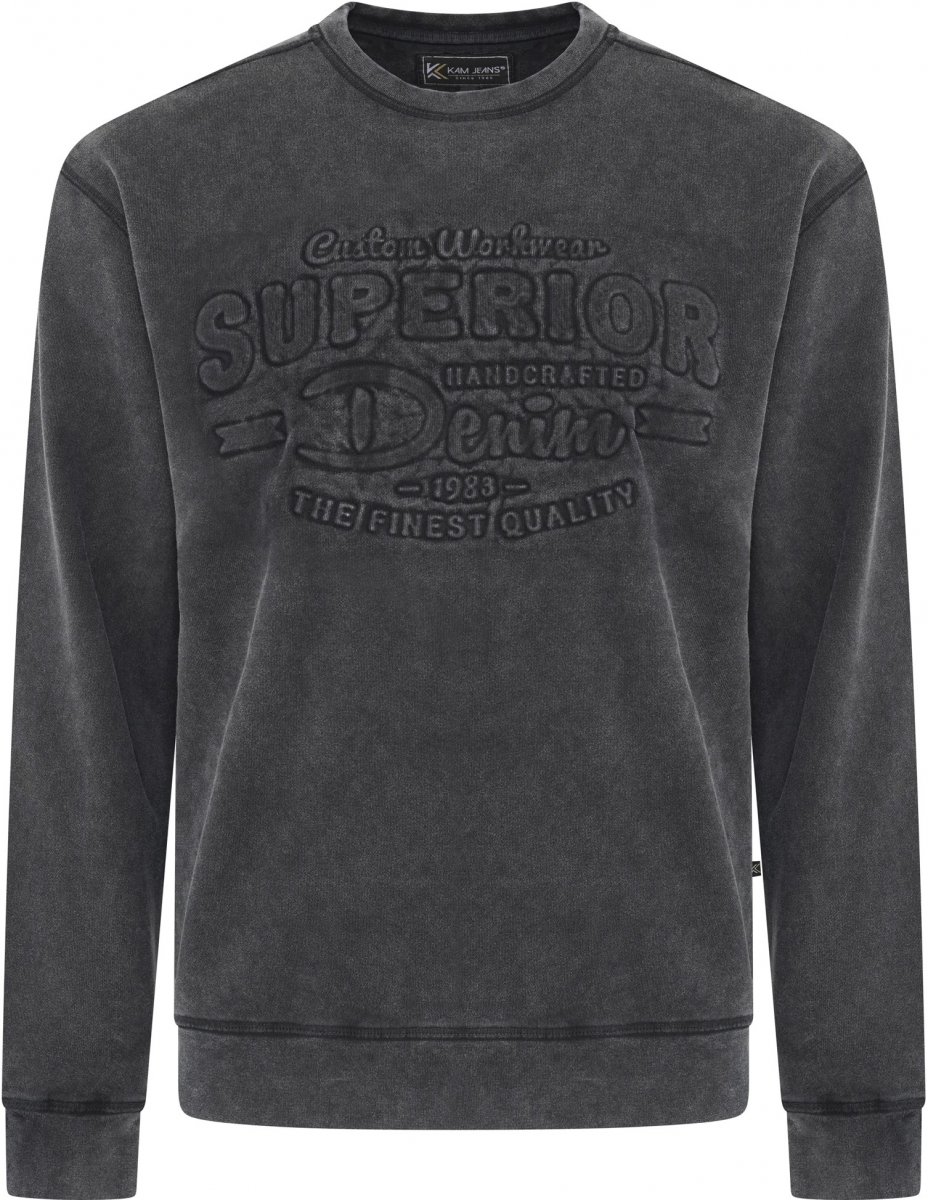 Maattabel - Kam Jeans 7065 Crew Neck Washed Embossed Sweatshirt Black TALL SIZES